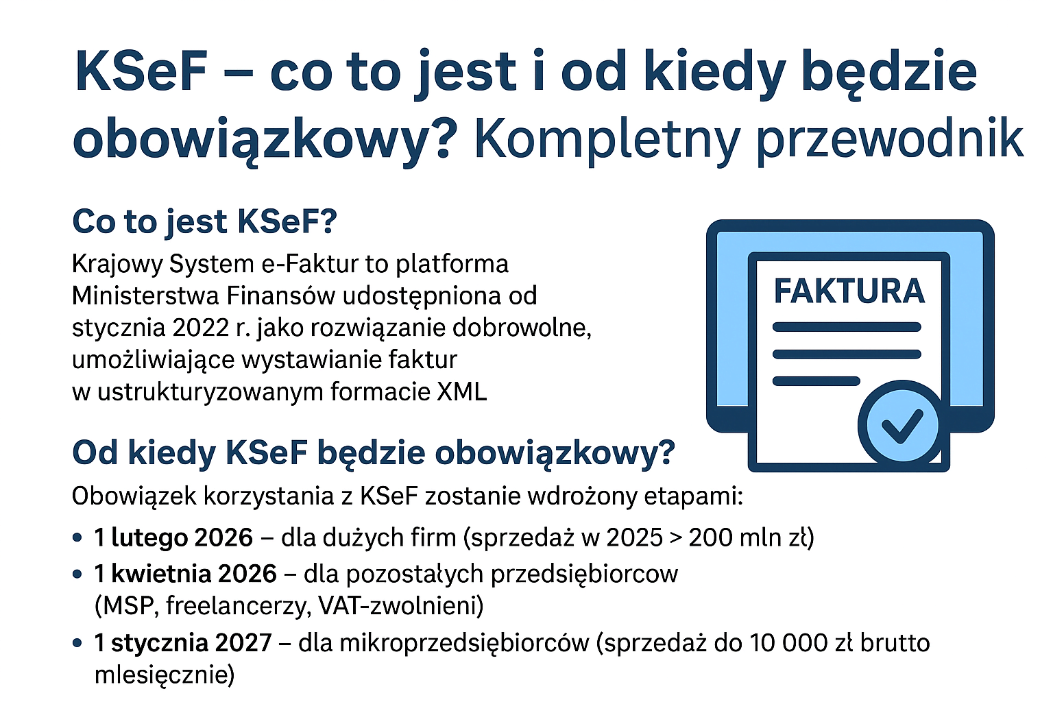Już wkrótce Krajowy System e-Faktur (KSeF) staje się obowiązkowym narzędziem dla wszystkich przedsiębiorców. To największa zmiana w rozliczaniu podatków od czasu wprowadzenia JPK. Warto już teraz wiedzieć, czym jest KSeF, jakie korzyści przynosi i jak przygotować firmę do nowych zasad fakturowania.